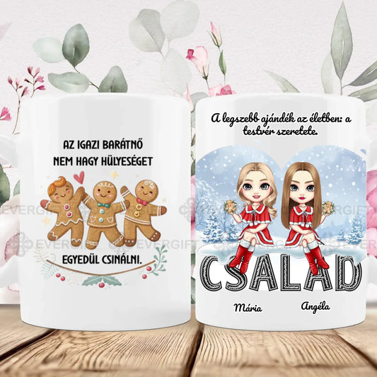 Cuki családi lányos karácsonyi ajándék bögre akár 6 fővel