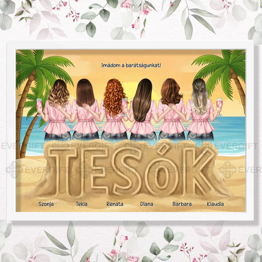 Tesóknak aranyos személyre szabható falikép- akár 8 lánnyal