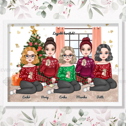 Karácsonyi lányok legjobb testvér/Barátnő - személyre szabható falikép akár 6 lánnyal