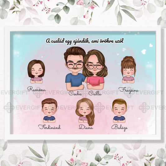 Szülők akár 5 gyerekkel - személyre szabható falikép