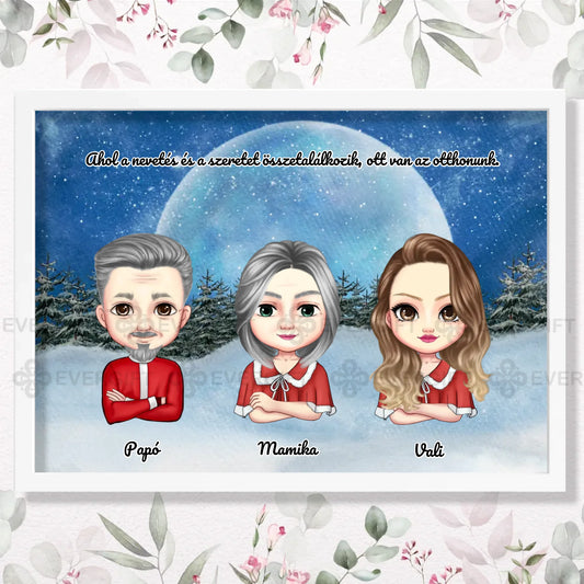 Karácsonyi családi falikép - akár 8 karakterrel