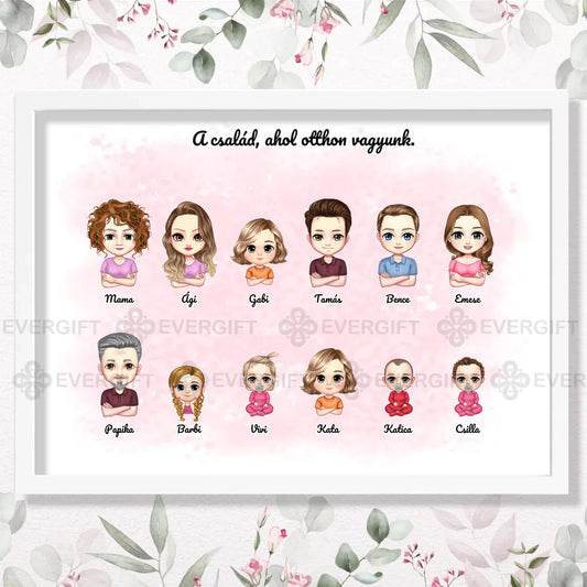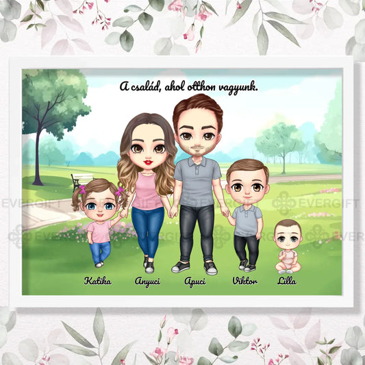 Családi cuki falikép - személyre szabható karakterekkel