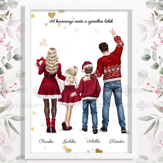Karácsonyi család - személyre szabható falikép akár 4 gyerekkel fekvő változat