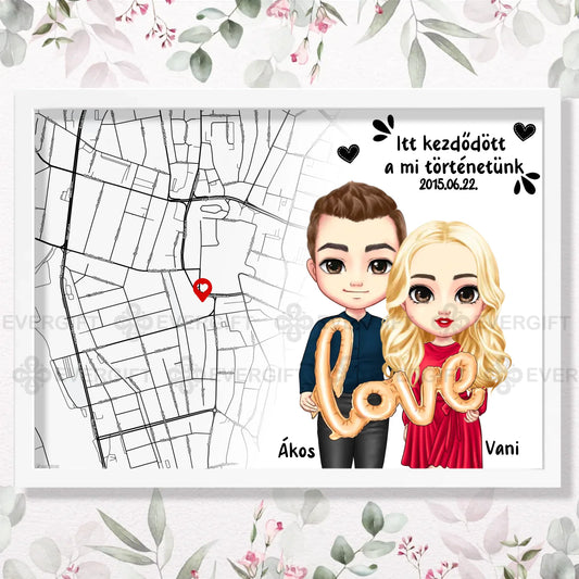 Minden itt kezdődött- személyre szabható falikép szerelmes pároknak