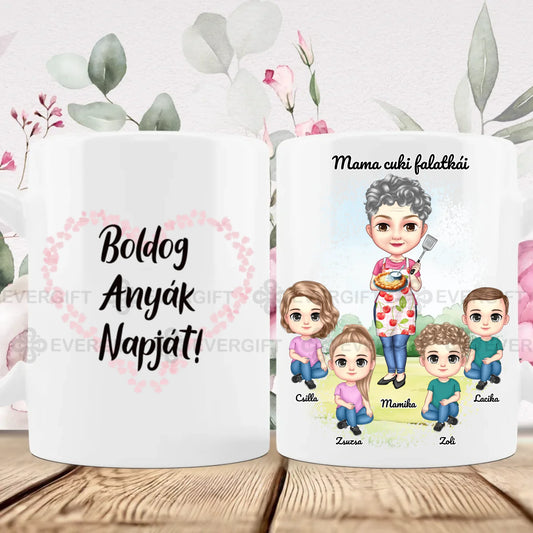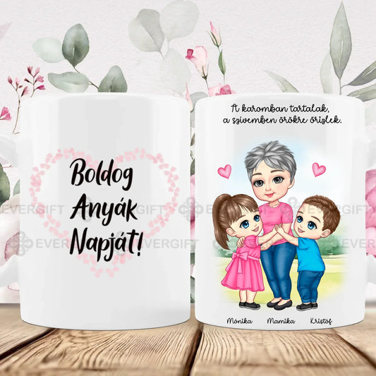 Nagymam és unokái bögre - személyre szabható cuki karakterekkel