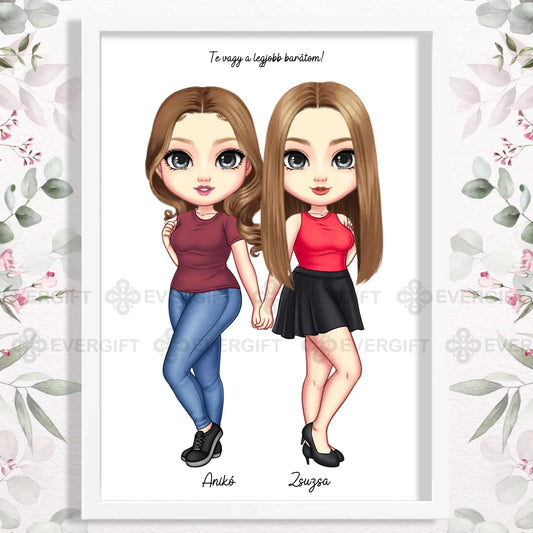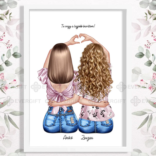 Legjobb barátnők/ testvérek - személyre szabható falikép akár 4 emberrel